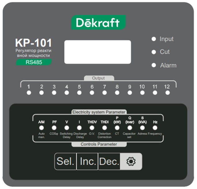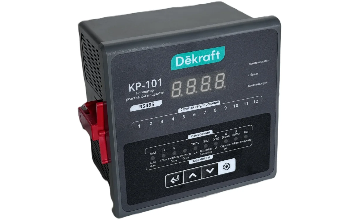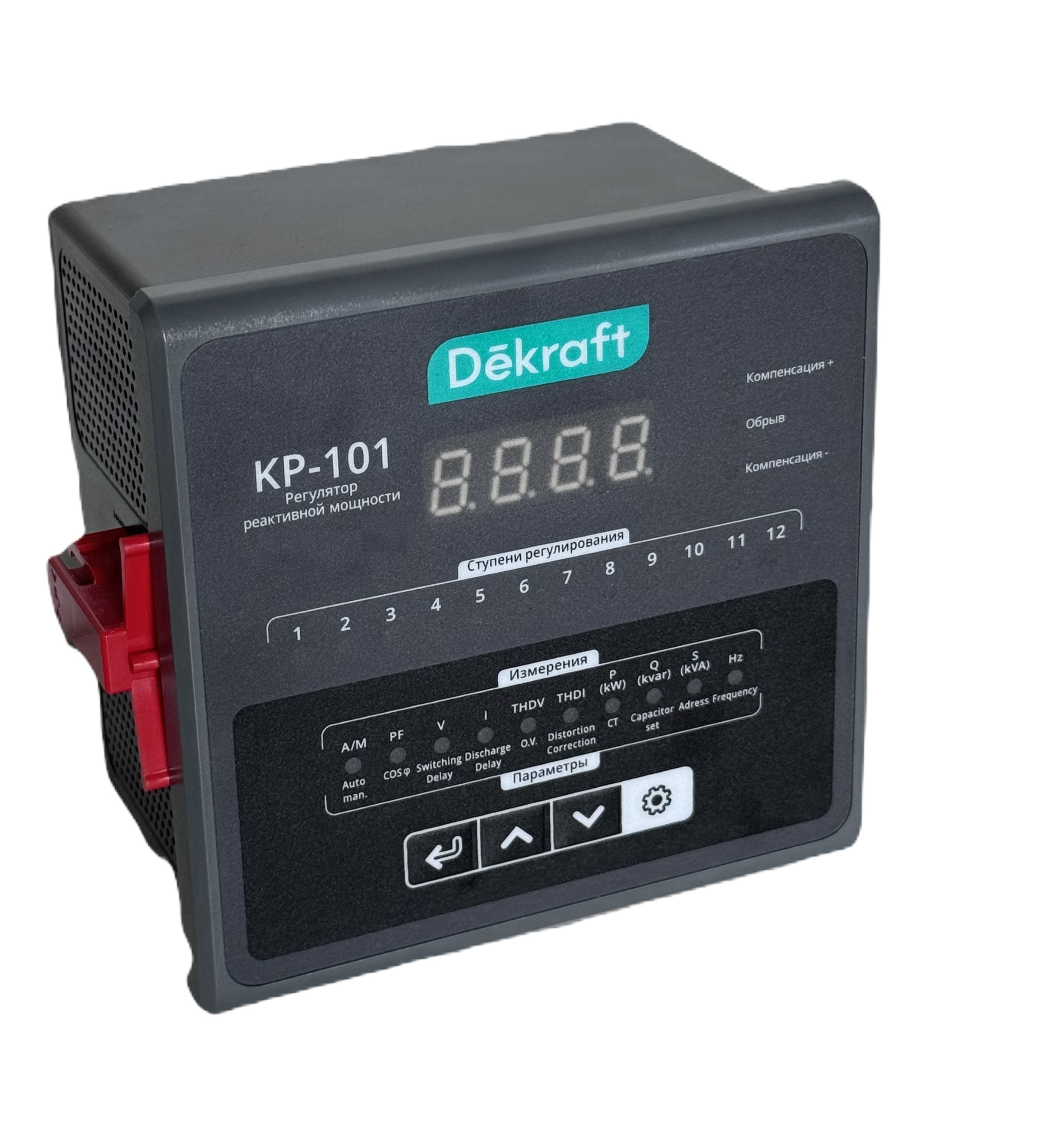 Регулятор реактивной мощности серии КР-101 new предназначен для автоматической регулировки устройства компенсации реактивной мощности в низковольтной распределительной сети, что позволяет достичь заданного пользователем коэффициента мощности, повышает эффективность силового трансформатора, уменьшает потери в линии и улучшает качество электроэнергии.