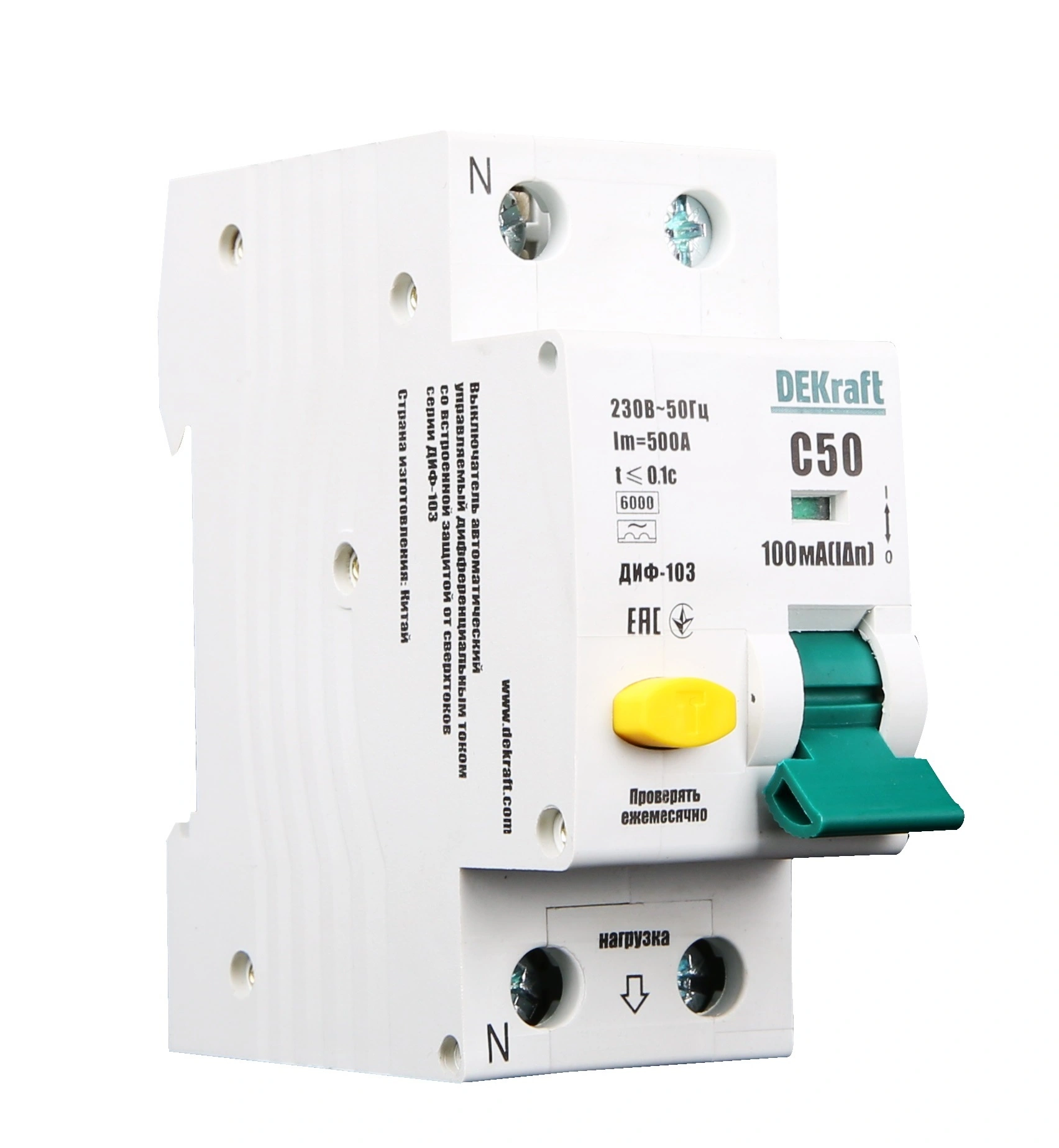 | 50 | 100 | 1P+N | ДИФ103-6кА-1N-50А-100-C | 16210DEK | 16235DEK | ||