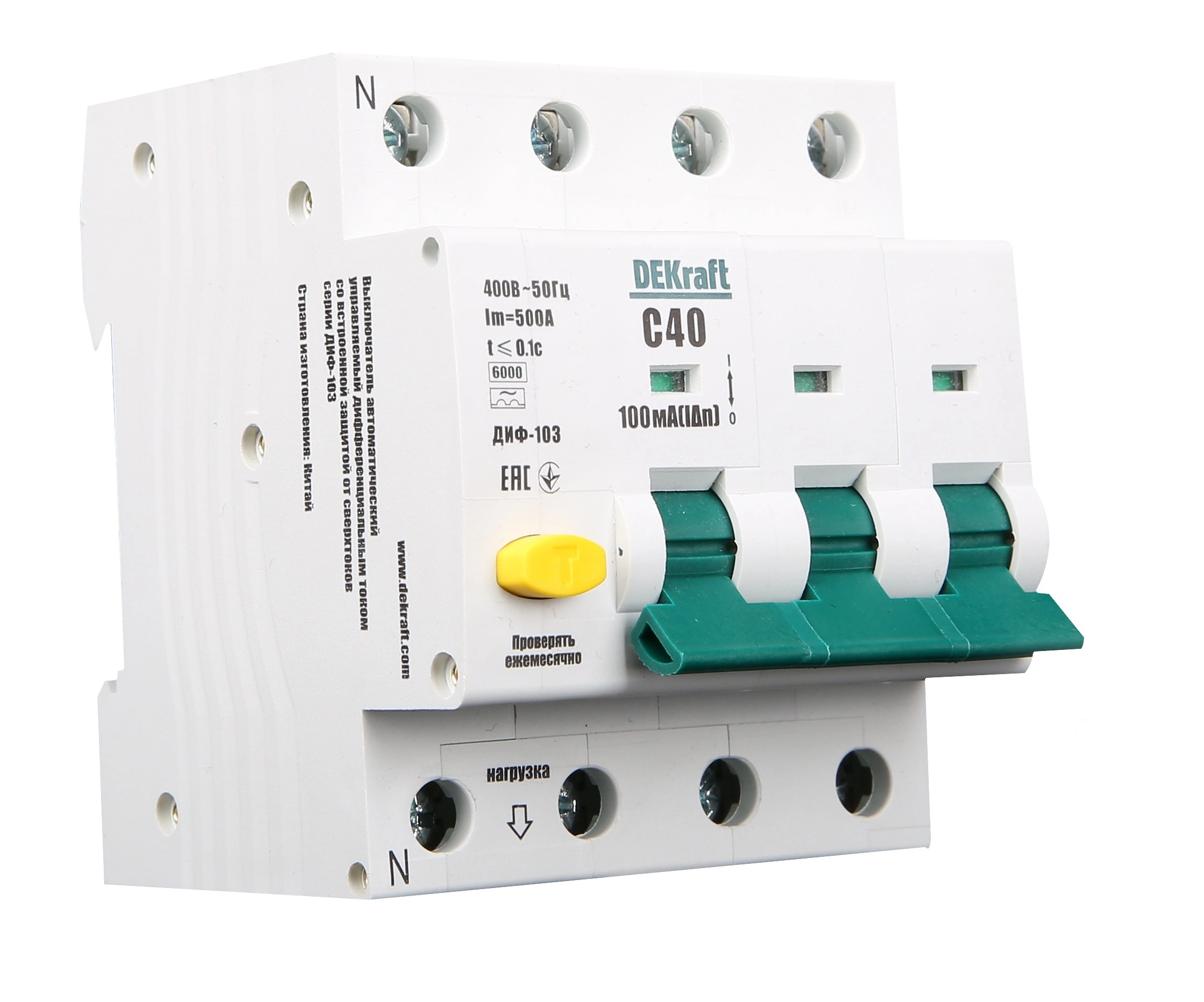 | 40 | 100 | 3P+N | ДИФ103-6кА-3N-40А-100-C | 16220DEK | 16245DEK | ||