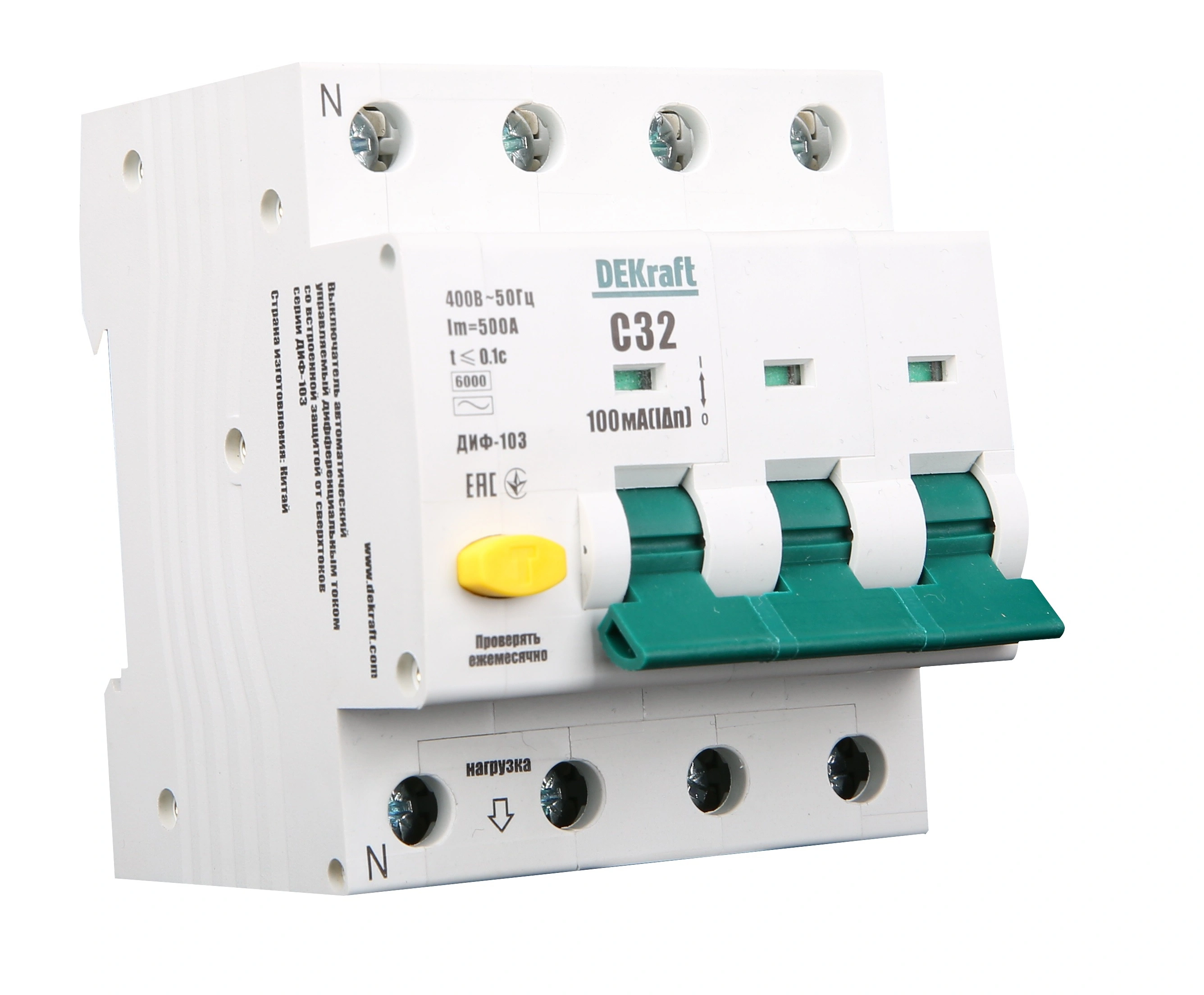 | 32 | 100 | 3P+N | ДИФ103-6кА-3N-32А-100-C | 16219DEK | 16244DEK | ||