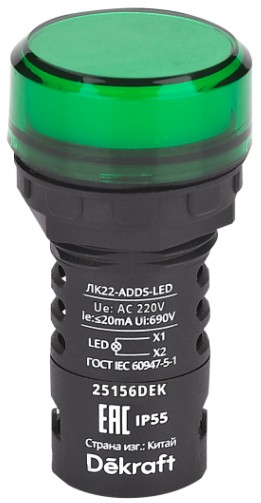 | Зеленый / Светодиодная матрица | ЛК-22-ADDS-LED-GRN-AC220В-IP55 | 25156DEK | |