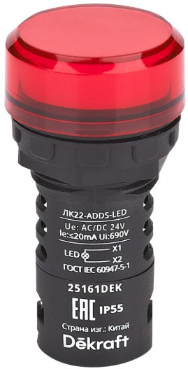 | Красный / Светодиодная матрица | ЛК-22-ADDS-LED-RED-AC/DC24В-IP55 | 25161DEK | |