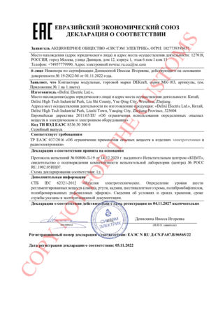 Декларация о соответствии требованиям Технического регламента Евразийского экономического союза ТР ЕАЭС 037/2016 "Об ограничении применения опасных веществ в изделиях электротехники и радиоэлектроники"