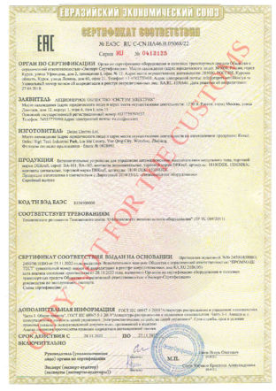 Сертификат соответствия требованиям Технического регламента Таможенного союза ТР ТС 004/2011 "О безопасности низковольтного оборудования"