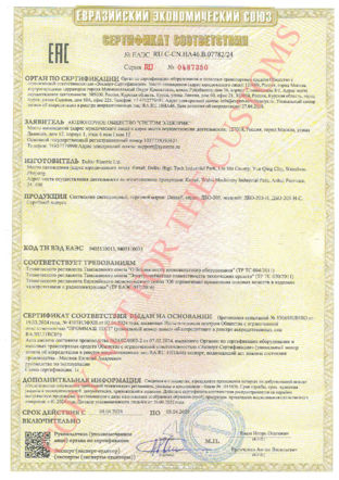 Сертификат соответствия требованиям Технического регламента Таможенного союза ТР ТС 020/2011 "Электромагнитная совместимость технических средств", Сертификат соответствия требованиям Технического регламента Таможенного союза ТР ТС 004/2011 "О безопасности низковольтного оборудования", Сертификат соответствия требованиям Технического регламента Евразийского экономического союза ТР ЕАЭС 037/2016 "Об ограничении применения опасных веществ в изделиях электротехники и радиоэлектроники"