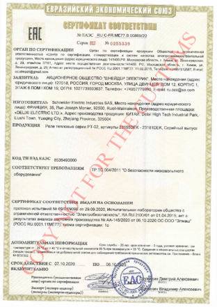 Сертификат соответствия требованиям Технического регламента Таможенного союза ТР ТС 004/2011 "О безопасности низковольтного оборудования"