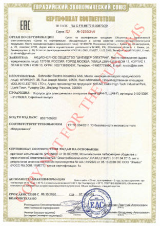 Сертификат соответствия требованиям Технического регламента Таможенного союза ТР ТС 004/2011 "О безопасности низковольтного оборудования"