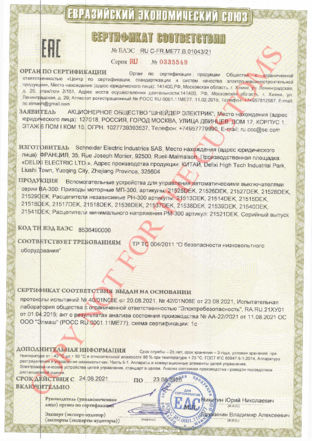 Сертификат соответствия требованиям Технического регламента Таможенного союза ТР ТС 004/2011 "О безопасности низковольтного оборудования"