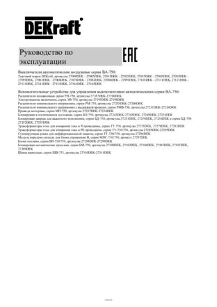 Руководство распространяется на воздушные выключатели автоматические ВА-750, ТМ DEKraft на номинальные токи 400, 630, 800, 1000, 1250, 1600, 2000, 2500, 3200, 4000, 5000, 6300A. Воздушные автоматические выключатели серии ВА-750 используются в качестве вводных и секционных аппаратов для первичного распределения электроэнергии в низковольтных установках в сетях 50/60 Гц, 660/690 В.