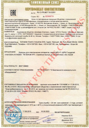 Сертификат соответствия требованиям Технического регламента Таможенного союза ТР ТС 004/2011 "О безопасности низковольтного оборудования"