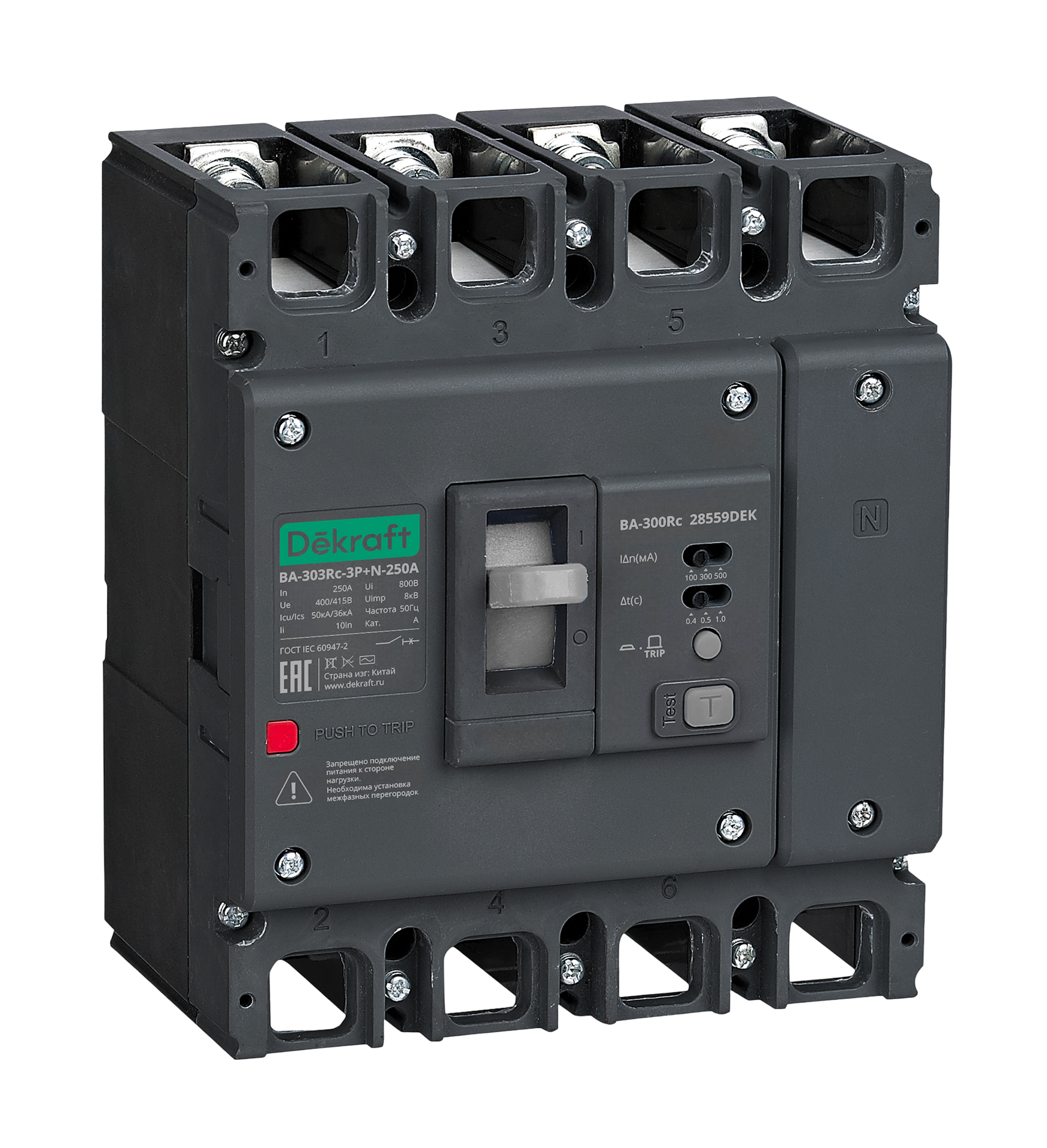 Силовой авт. выкл. ВА-303Rc Inst 3P+N 250А 50кА 100/300/500мА