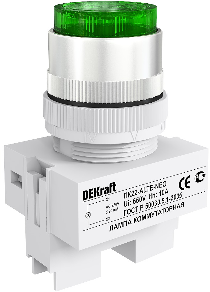 Лампа комм. ALTE D22 ЗЕЛЕНЫЙ неон 220В ЛK-22