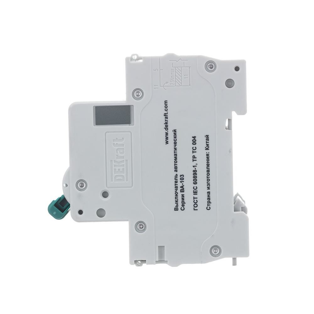 Автоматический выключатель серии ВА-103 NEW Dekraft; 3P; номинальный ток 32 А; характеристика C; отключающая способность 6 кА, что позволяет использовать аппараты в качестве вводных. 5 монолитных заклепок повышают прочность корпуса аппарата. Окошко-индикатор всегда показывает состояние контактов вне зависимости от положения рукоятки управления. Боковые каналы охлаждения повышают стабильность работы при высоких температурах окружающей среды. Есть возможность установки дополнительных аксессуаров с левой стороны устройства. Аппарат на 100% совместим с корпусами и оболочками Dekraft, Systeme Electric.