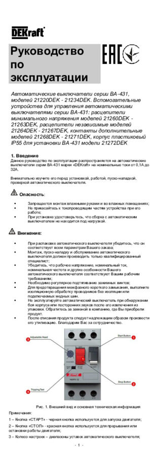 Автоматический выключатель серии ВА-431 Dekraft; диапазон уставок тока 1,6 - 2,5 А; ном. раб. напряжение 690 В; сечение подключаемых проводников 1,0 - 6,0 кв. мм. Корпус устройства изготовлен из самозатухающей пластмассы. Автоматические выключатели защиты двигателя серии ВА-431 Dekraft предназначены для управления и защиты трехфазных асинхронных электродвигателей от короткого замыкания, перегрузки и выпадения фазы. Дополнительно доступен ряд аксессуаров, облегчающих работу с устройством.