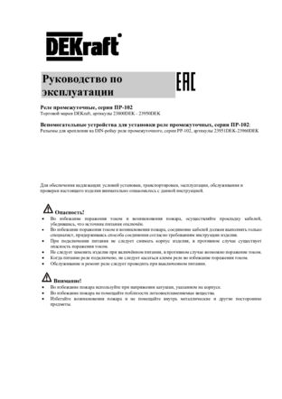 Промежуточное реле серии ПР-102 Dekraft; номинальный ток 10 А; ном. напряжение катушки 127 В пер.тока; кол-во контактов - 2 переключающих; установка - на DIN-рейку или монтажную панель. Промежуточные реле ПР-102 предназначены для управления нагрузками небольшой мощности, требующими частых включений/отключений. Светодиодный индикатор показывает состояние реле. Реле имеет компактные размеры, что позволяет использовать их в местах с ограниченным пространством для монтажа.